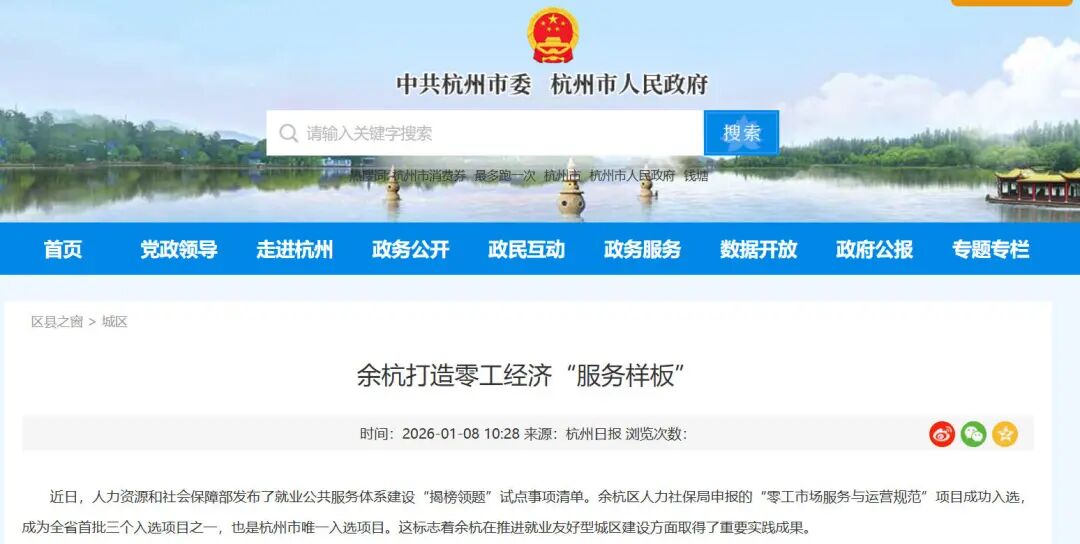 近日,人社部公布了就业公共服务体系建设“揭榜领题”试点项目名单,余杭区“零工市场服务与运营规范”项目成功入选。